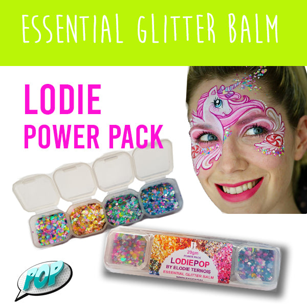Essential Glitter Balm by Incendium Arts is a wax based chunky glitter that allows you to spread the glitter over face paint without reactivating the paint! These bold chunky glitter mixes are perfect for adding sparkle to your face and body art designs! Essential Glitter Balm's first ingredient is glitter, so it is densely packed with the stuff you love! Incendium Arts took the time to have their product stress tested to make sure that it stays in an easy to use condition from 41-122 degrees Fahrenheit. This means you can use them not matter the weather! These polyester chunky glitters mixed into a skin nourishing balm, are a perfect addition to any ones face painting kit! Apply with a silicon applicator and avoid the immediate eye area.