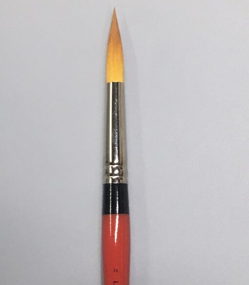 The floater brushes feature a golden taklon head and vintage red wooden handles with black bands at the nickel-plated ferrule. Because of the water holding capacity and point, it is also excellent for watercolors. Both durable and versatile, these brushes are loved for their absorbency, spring and fine chisel edge.