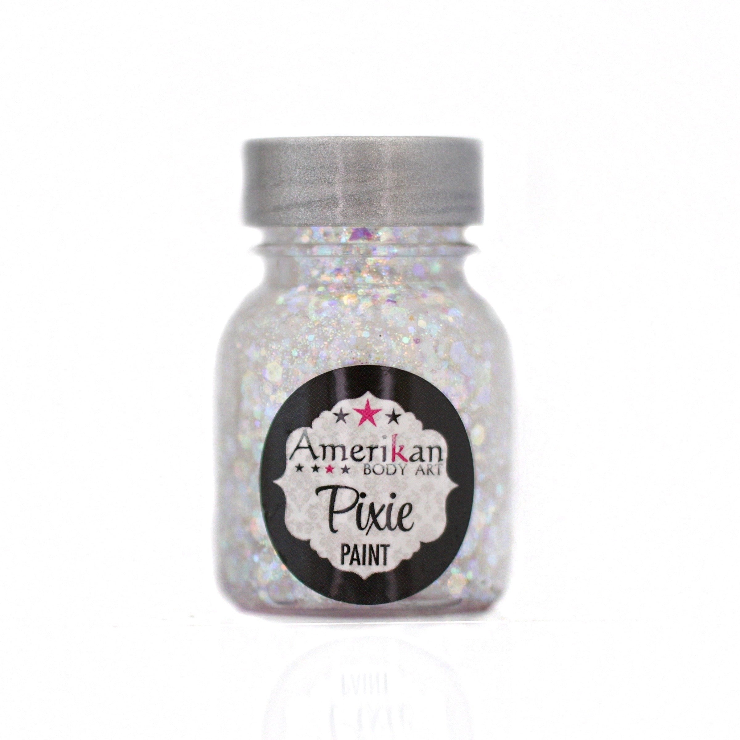 Pixie Paint is a blend of chunky and fine glitters along with our aloe glitter gel base. You can paint it on the face, body, and hair. It's perfect for Glitter Roots, cute Pixie-ish accents on the cheeks, and extreme coverage for dance clubs or festival body painting. Pixie Paint tends to stay put all day, with very little fallout, but can be easily washed off with water.
