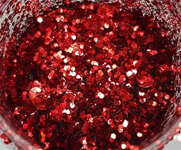 10g cosmetic red chunky Glitter in a small resealable bag.